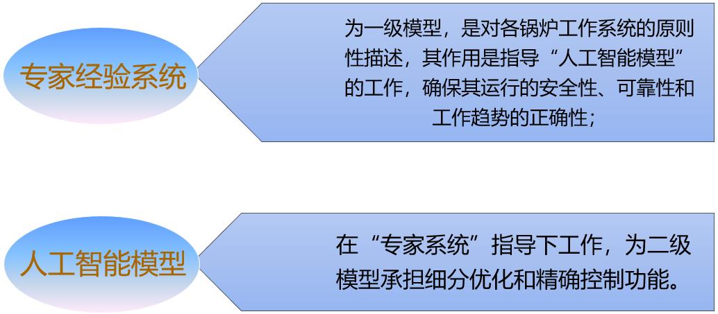 | 5 | 從模型應(yīng)用管理和應(yīng)用來說,“專家系統(tǒng)”和“人工智能模型”采用分級管理并具有不同分工:其中“專家系統(tǒng)”為一級模型,是對各工業(yè)系統(tǒng)的原則性描述,其作用是指導(dǎo)“人工智能模型”的工作,確保其運行的安全性、可靠性和工作趨勢的正確性;“人工智能模型”在“專家系統(tǒng)”指導(dǎo)下工作,為二級模型承擔(dān)細(xì)分優(yōu)化和控制功能。 |